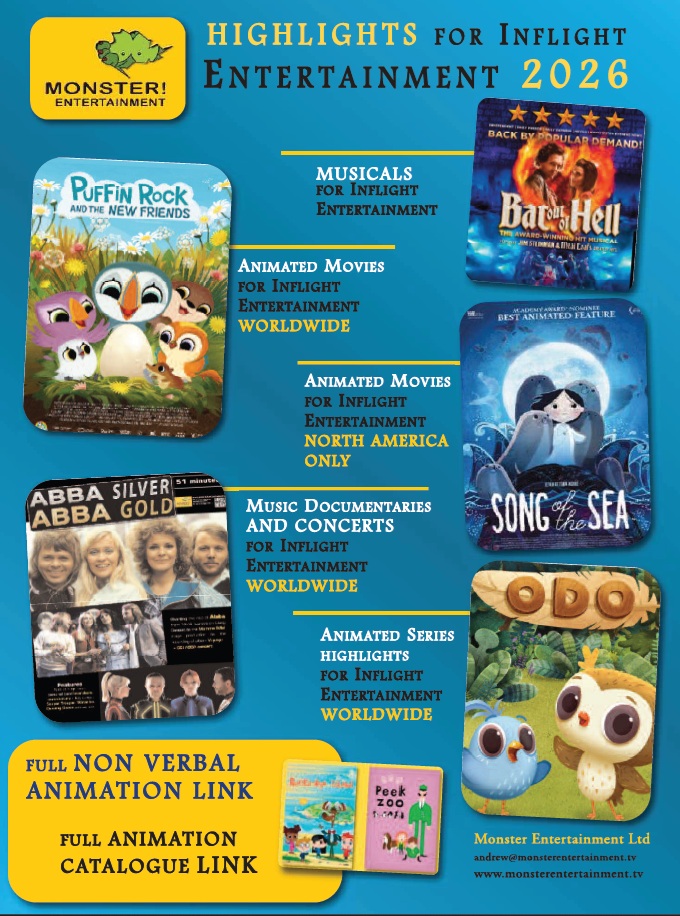 Monster Entertainment has also updated its selection of animated movies to include Outfoxed!, Jungle Beat 2 – The Past, and 3 Little Kungpoo Goats, which was produced in Dubai. The company holds in-flight worldwide rights for all three titles. Fitzpatrick commented, “We are excited to be able to offer locally produced content in Dubai. Animated movies are a perennial favourite and these, like the rest of the animated films we offer, are smart and offer something for the whole family.”