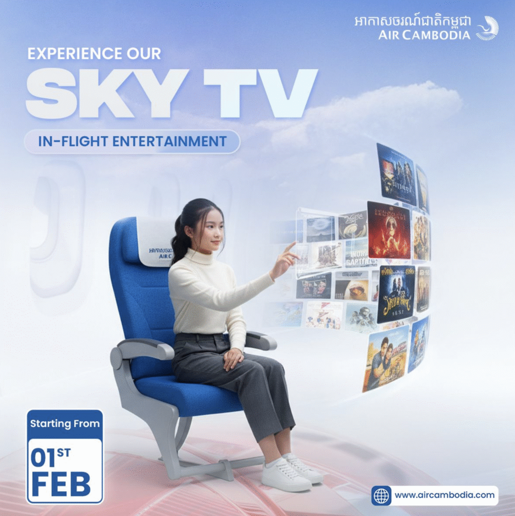 AirFi’s platform also leaves room for future enhancements. Beyond films and television, the system can support onboard retail, destination guides, and interactive features as Air Cambodia expands its digital roadmap.