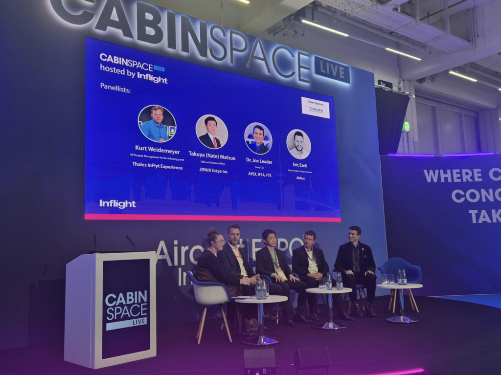 At Aircraft Interiors Expo (AIX) 2026, the future of the aircraft cabin took the spotlight during a CabinSpace Live panel moderated by APEX Insights Editor Stephanie Taylor, brought together four leaders with very different perspectives: ZIPAIR Tokyo CMO and Executive Officer Takuya Matsuo; APEX CEO Dr. Joe Leader; Airbus Head of Architecture, Technology and Innovation for Cabin and Cargo Eric Ezell; and Thales InFlyt Experience Chief Technology Officer Tudy Bedou.