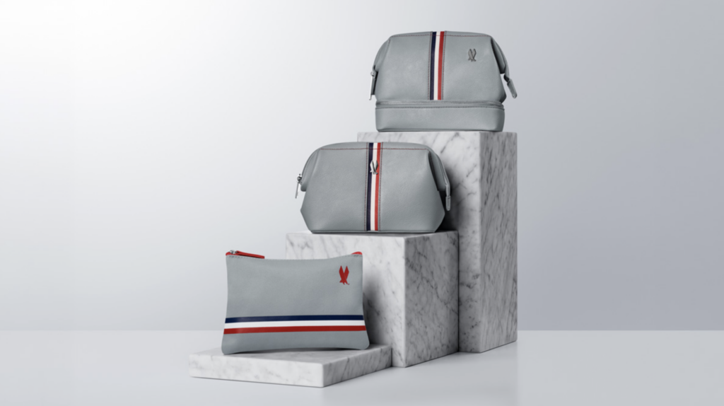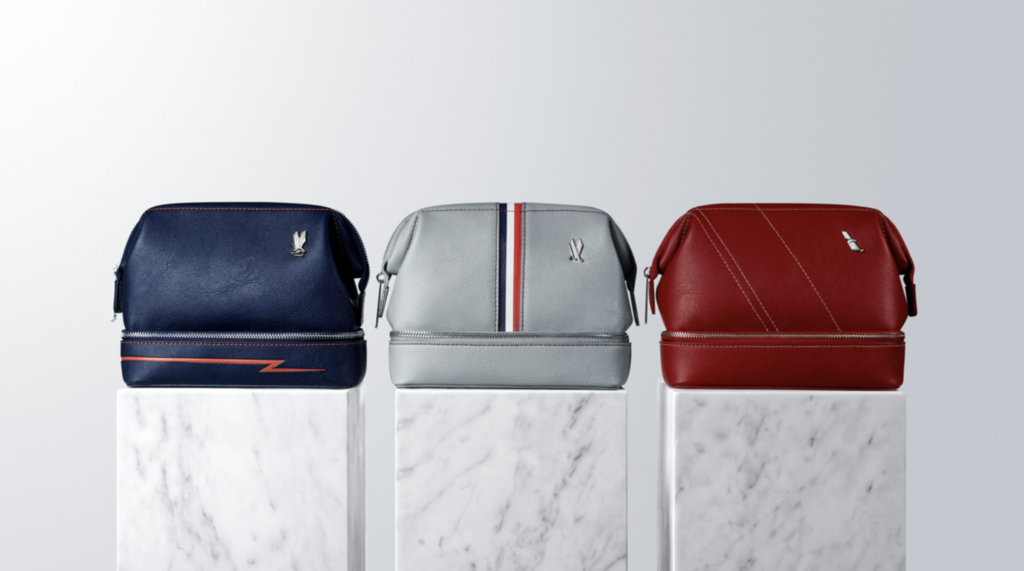 The Astrojet design, which features an orange lightning bolt on a navy blue bag, draws from the optimism of the early jet age with its bold color combination. Meanwhile, the Silverbird kit, with a metallic finish and tribar stripe channel, reflects the golden age of air travel. Finally, the Forward design takes the shape of a red bag complete with angled stitching, inspired by American’s flight symbol and newest seat designs, to represent the airline’s future.