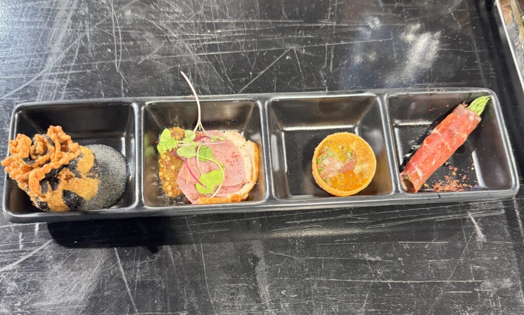 The other dishes included tuna tartare with smoked caviar made by Bliss, Mainline’s dressing division; and bresaola with aged sherry drizzle from Haywood’s Provisions, Mainline’s charcuterie company, also based in Marietta. Each product reflected a balance between culinary creativity and scalability for airline service.