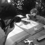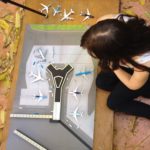 We started shooting photos of details, with very short depth of field, to emphasize the fact that we were portraying a miniature. Hands were also very important to show the scale that we were working on, so we put our own hands in the picture! To make the aerial image that opens the article we had to move the model to the floor that was covered with autumn leaves. Our biggest challenge was to make the poses natural, avoid our clothes reflecting on the airport ceiling, and of course leaving space for our headline within the image frame.