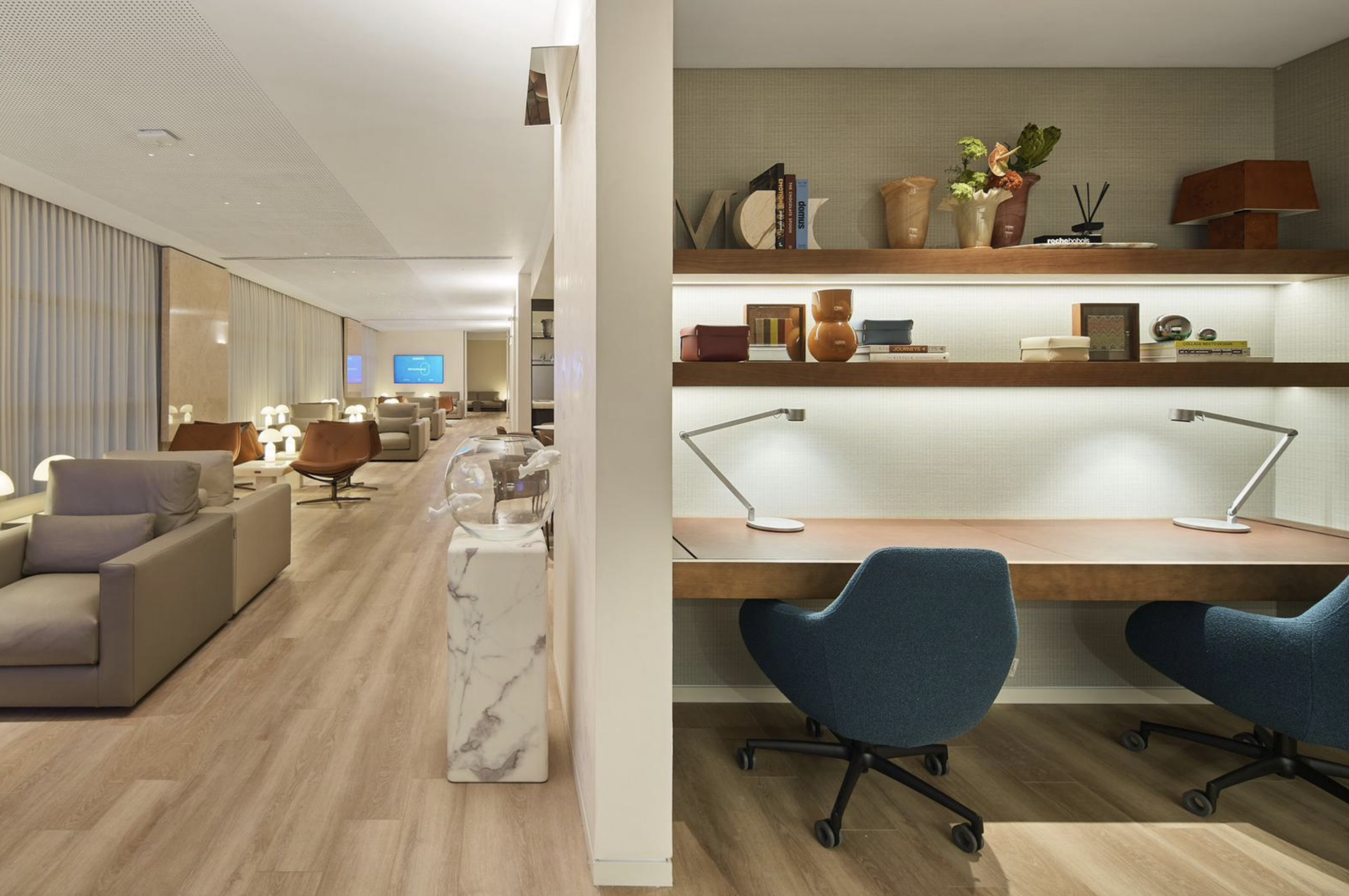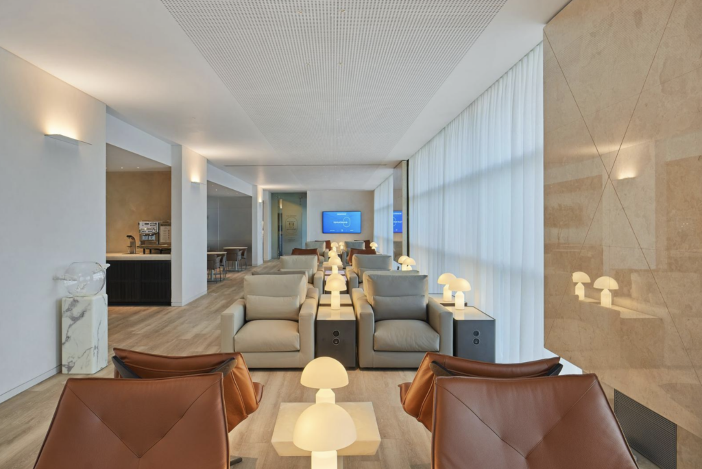 The redesign centers on a more flexible layout. New seating areas offer a range of options, from open social spaces to more private corners, allowing passengers to choose how they want to spend their time before departure. Whether preparing for a flight, catching up on work, or simply relaxing, the lounge supports different needs without feeling crowded.