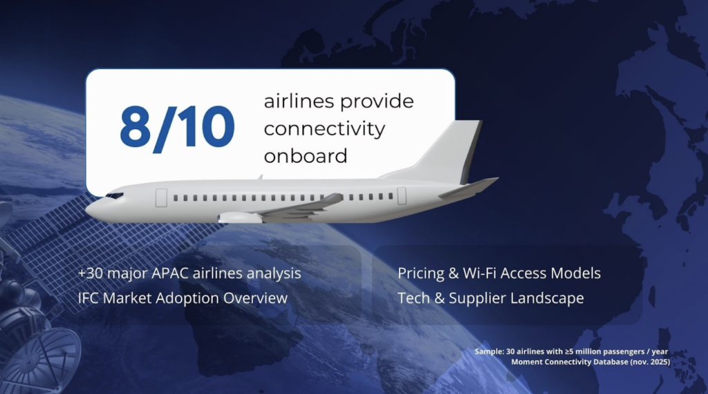 Moment has released new findings that highlight how in-flight connectivity (IFC) is evolving into a core strategic driver for airlines across the Asia-Pacific (APAC) region. The study examines adoption levels, pricing approaches, and the growing role of onboard internet in shaping passenger engagement, loyalty, and revenue performance. As digital expectations continue to rise, the report suggests that connectivity is no longer viewed as an optional amenity but as a foundational component of the modern in-flight experience in the region.