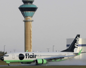 A Flair Airlines Boeing 737 lands at Toronto Pearson International Airport. Captured by @ebidinotphotography (via Instagram).